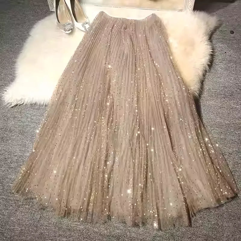 Chen Heavy Embroidery Starry Sequin Tulle Skirt - Starry Sky Design