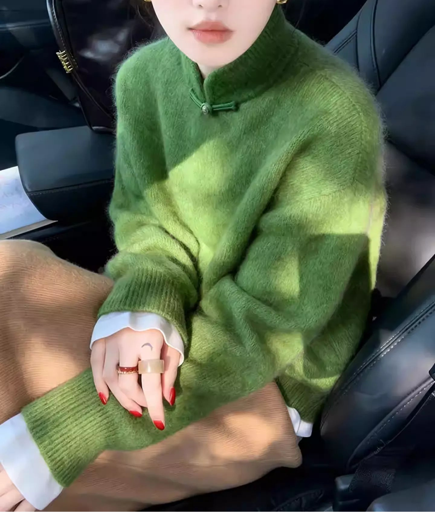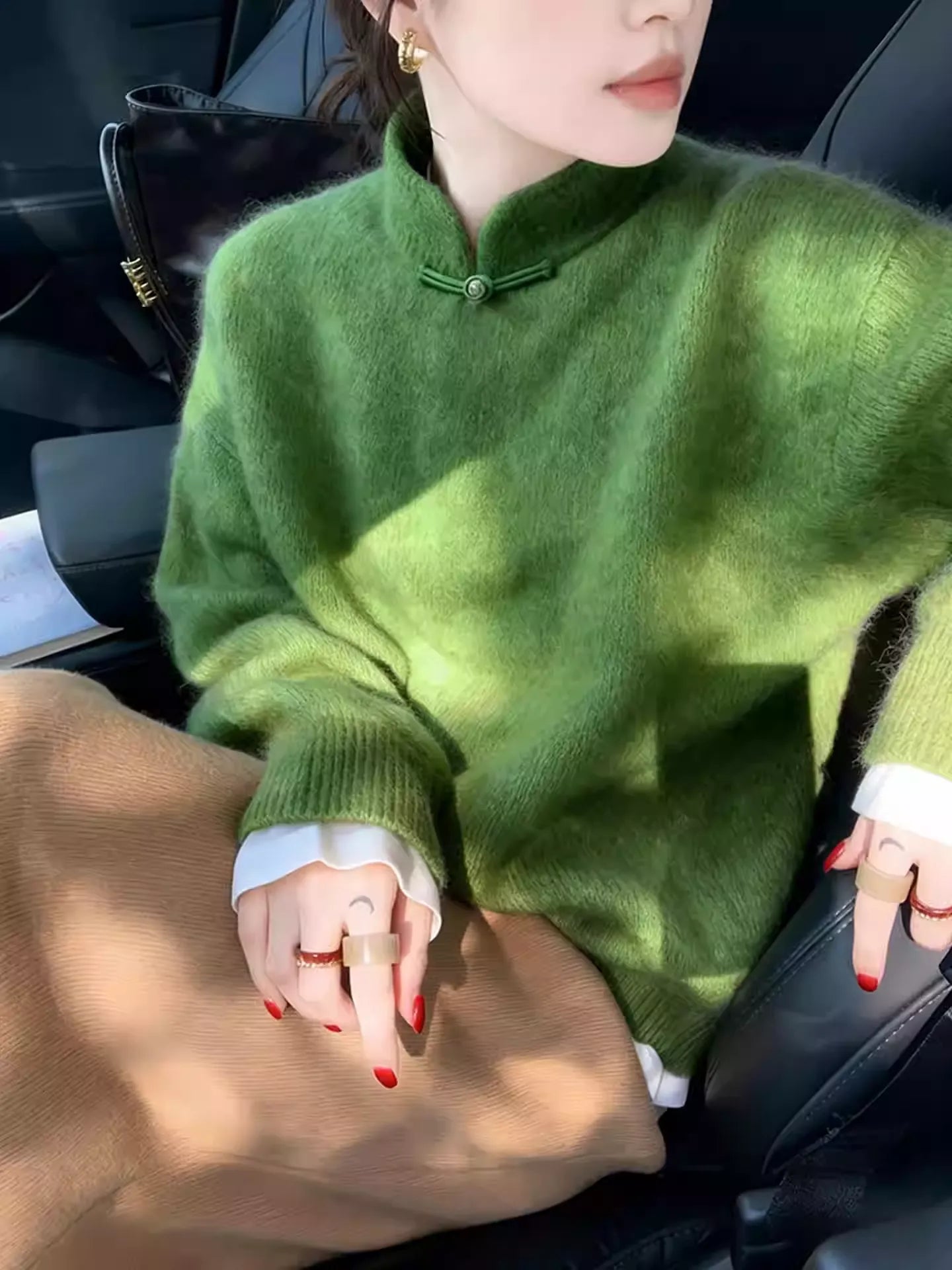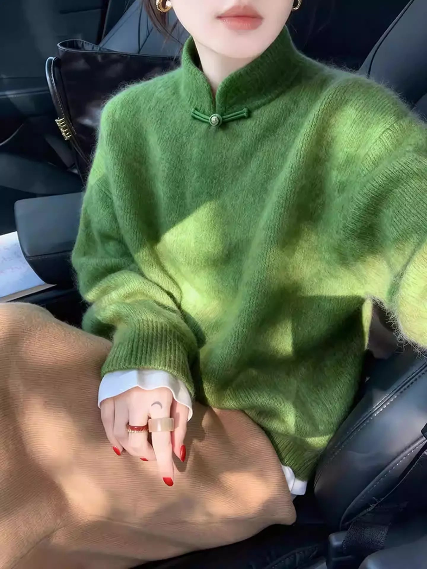 Chinese Mandarin Collar Sweater Thick Soft Lazy Luxury Winter Top
