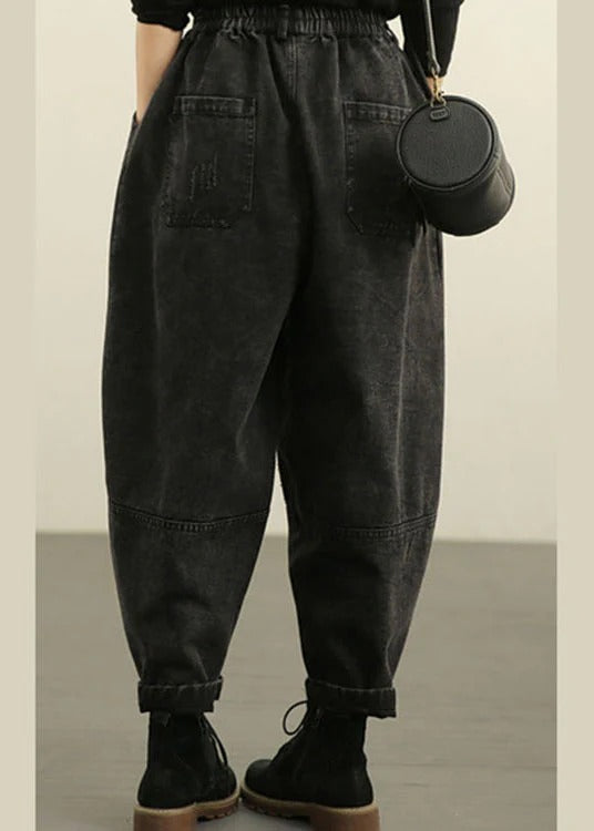 DIY Blue High Waist Pockets wrinkled Harem Fall Denim Pants