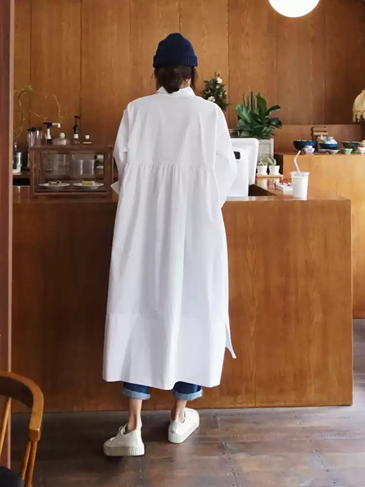 Loose Fit Slimming White Doll Dress Long Sleeve Maxi Dress for Women