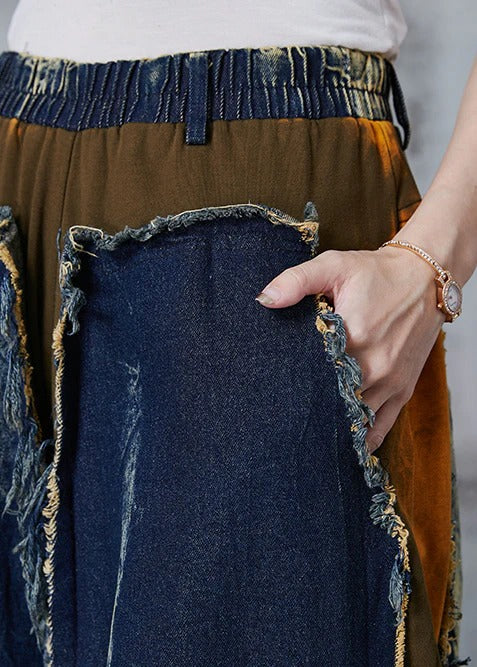 Original Design Navy Tie Dye Patchwork Denim Ripped Straight Pants Fall