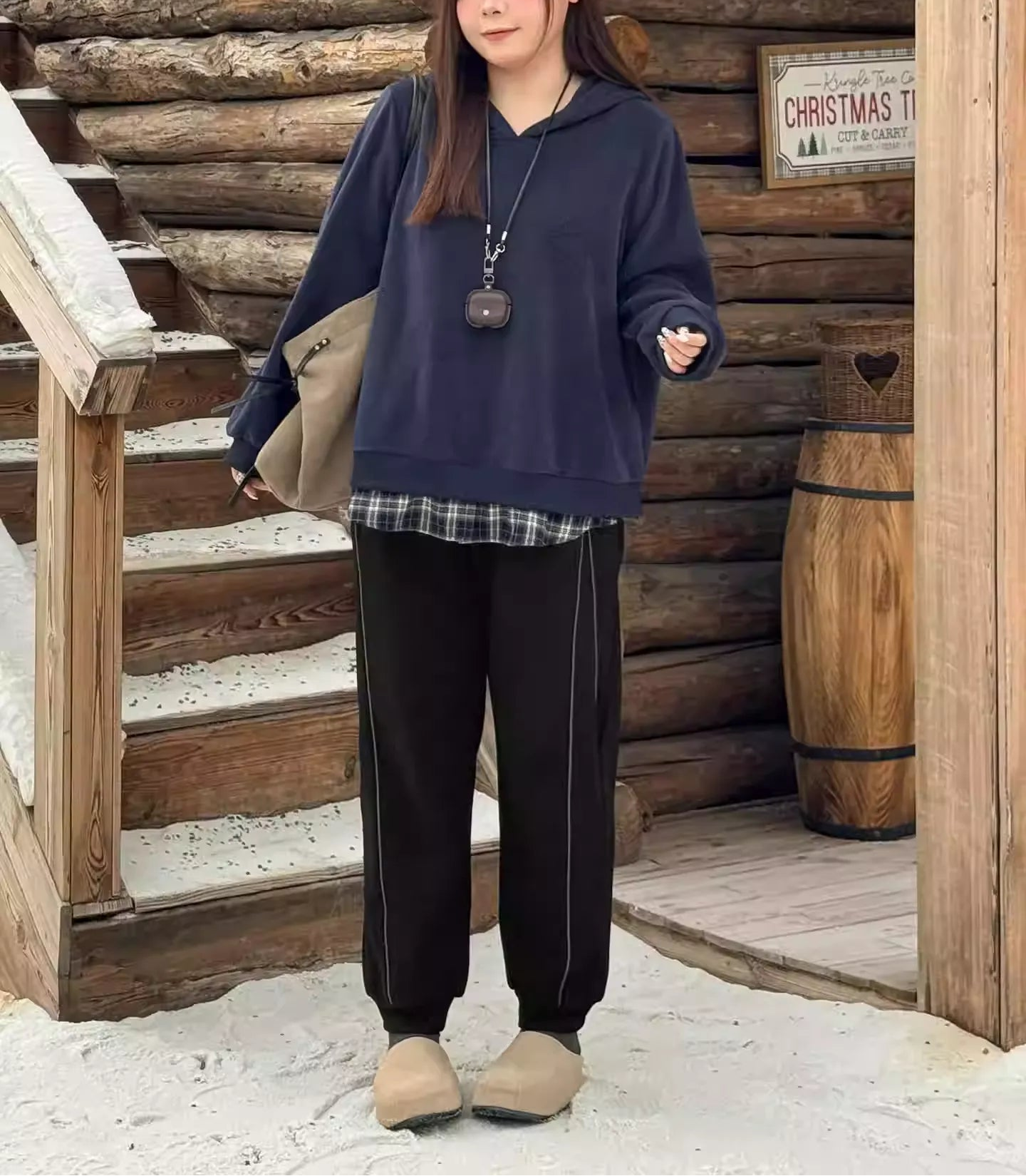 Plus Size Green Street Style 450g High Waist Fleece Lined Pants