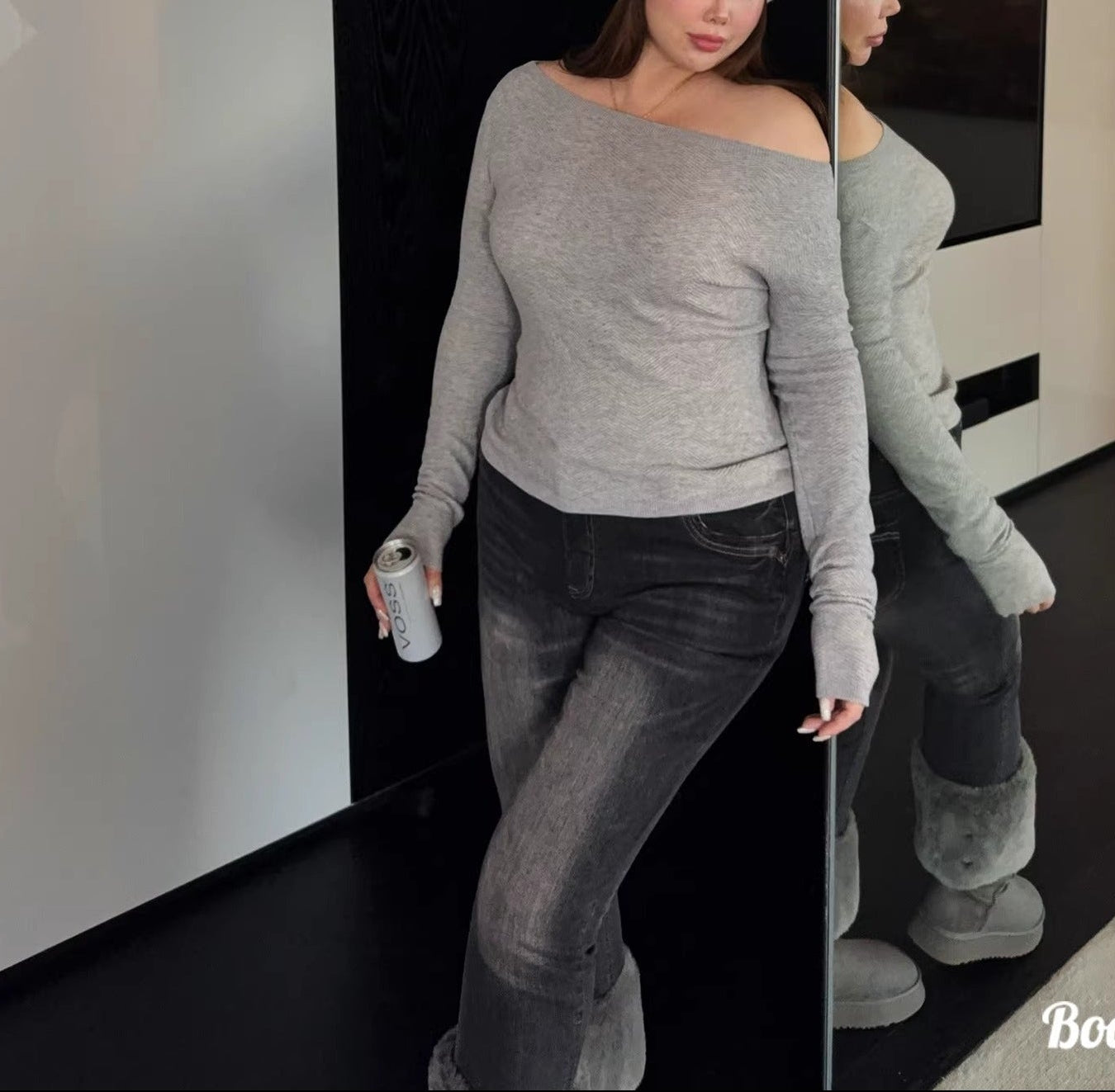 Plus Size Off-Shoulder Herringbone Knit Top