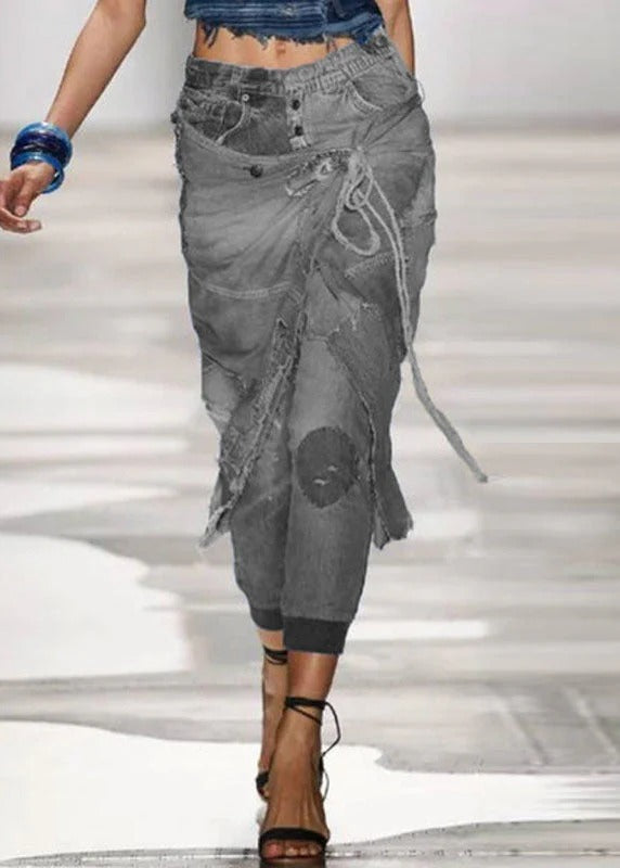 Stylish Blue Pockets Lace Up Patchwork Denim Beam Crop Pants Summer
