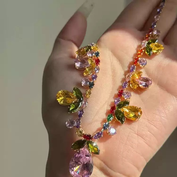 Women's Floral Leaf Drop Pendant Choker Necklace, Delicate Clavicle Chain